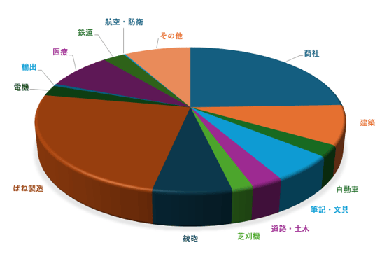 ほかにも建築関係・自動車部品・筆記具/文具・道路/土木・芝刈機部品・銃砲・医療など、様々な業種の方々からばね製造依頼が届き、日々丁寧に製造しています♪