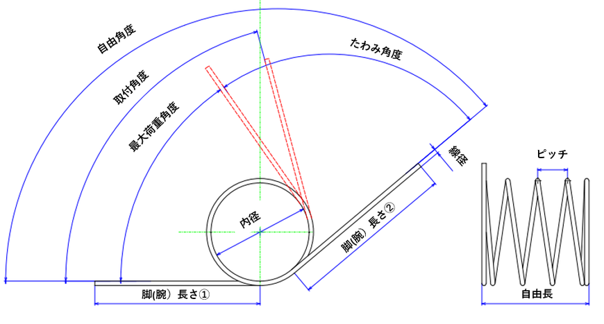 【トーションばねの形状と名称】