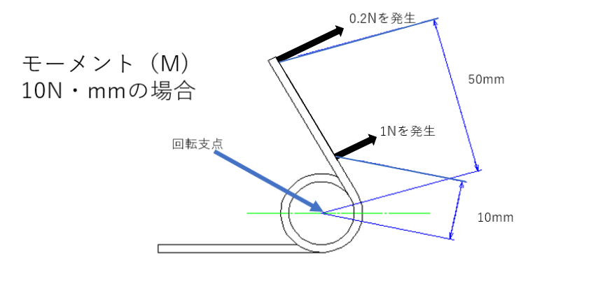 例:モーメント(M)10N・mmはコイル中心から1mmの位置で10Nを発生